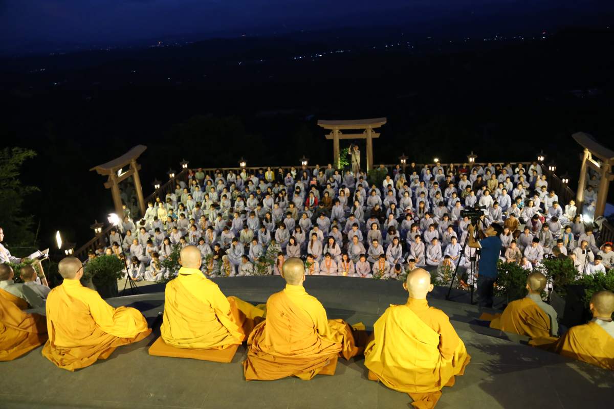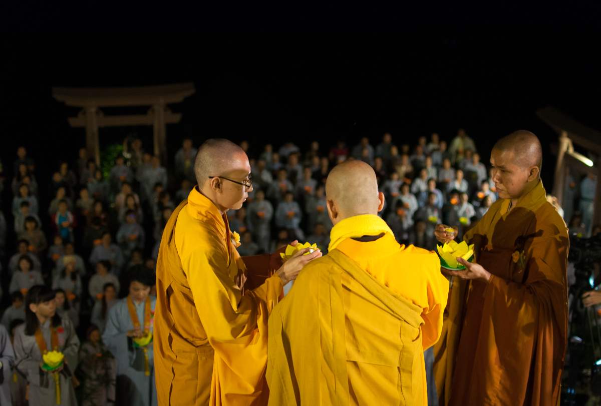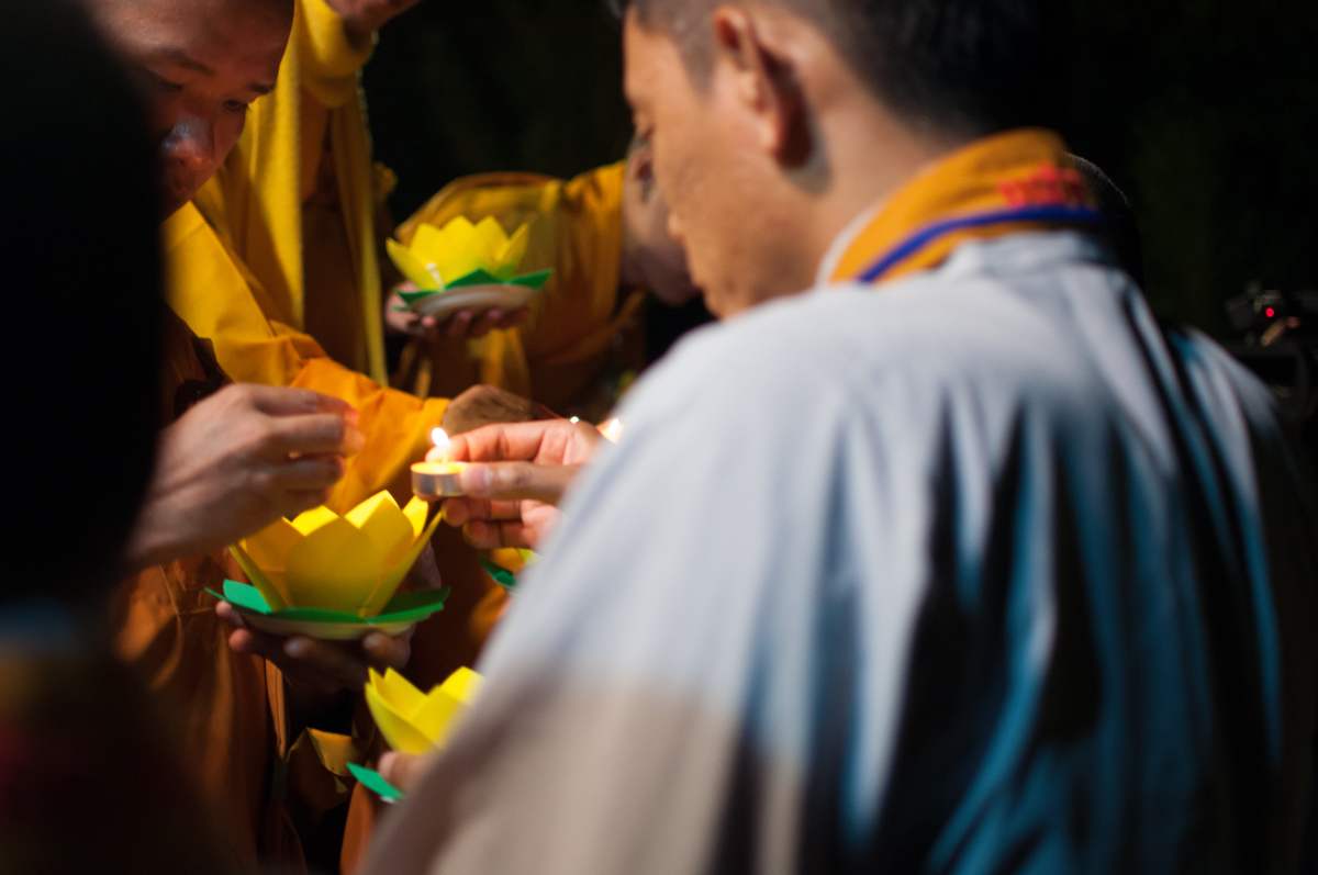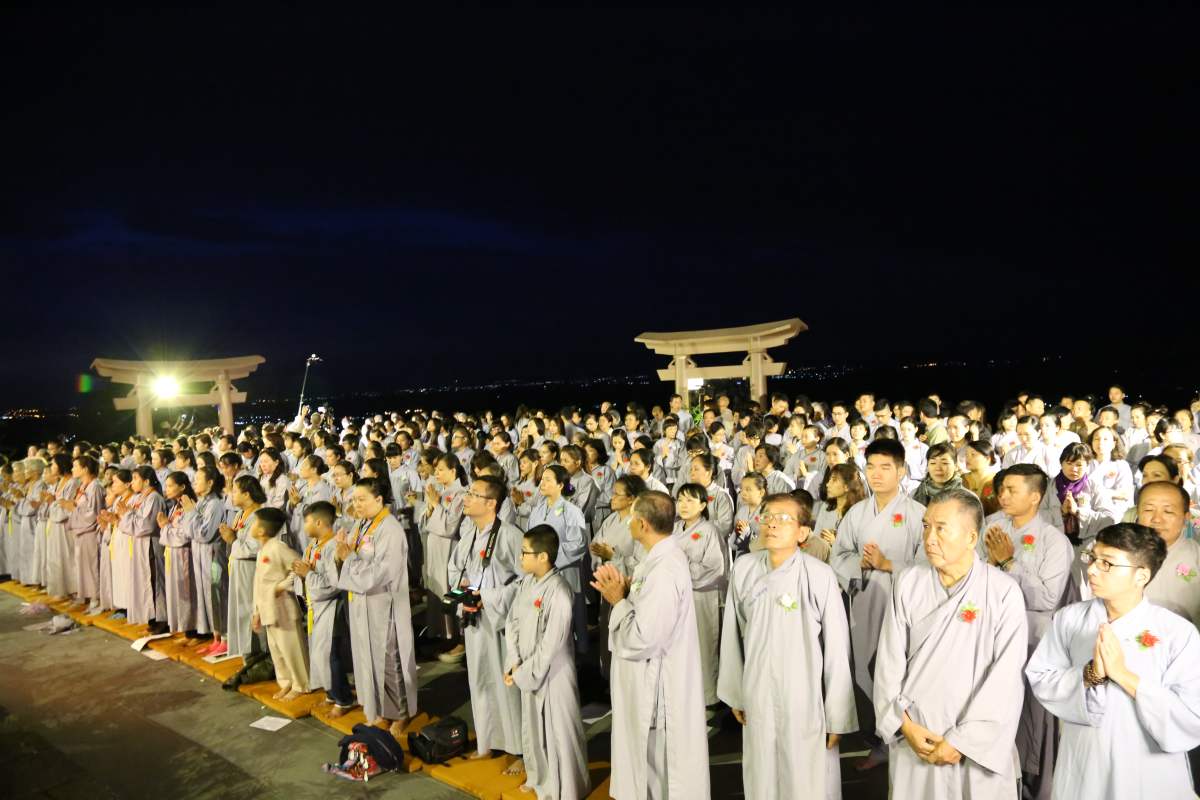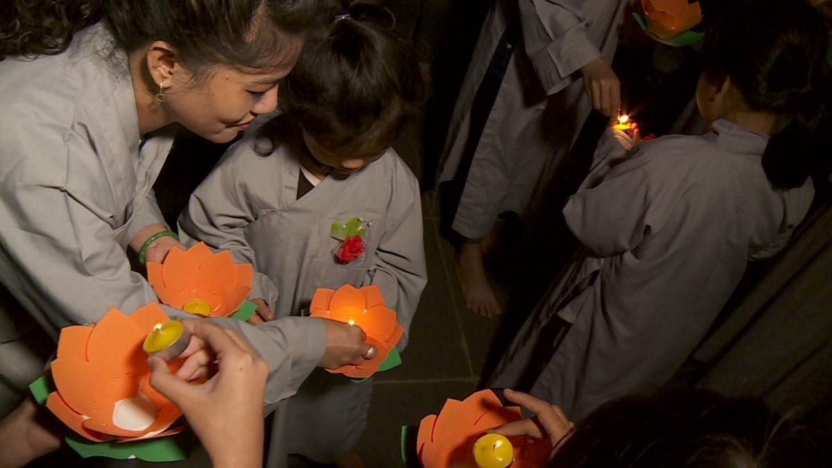 Sau nghi lễ cài hoa hồng là nghi thức dâng đèn hoa đăng với ý nghĩa thắp sáng niềm tin vào ba ngôi Tam bảo. Cầu cho quốc thái dân an, tri ân công sanh thành dưỡng dục của cha và mẹ. Những ngọn đèn mang lại ánh sáng ấm áp, xua tan đi những oan khiên, hận thù, bước theo con đường giải thoát của Như lai.