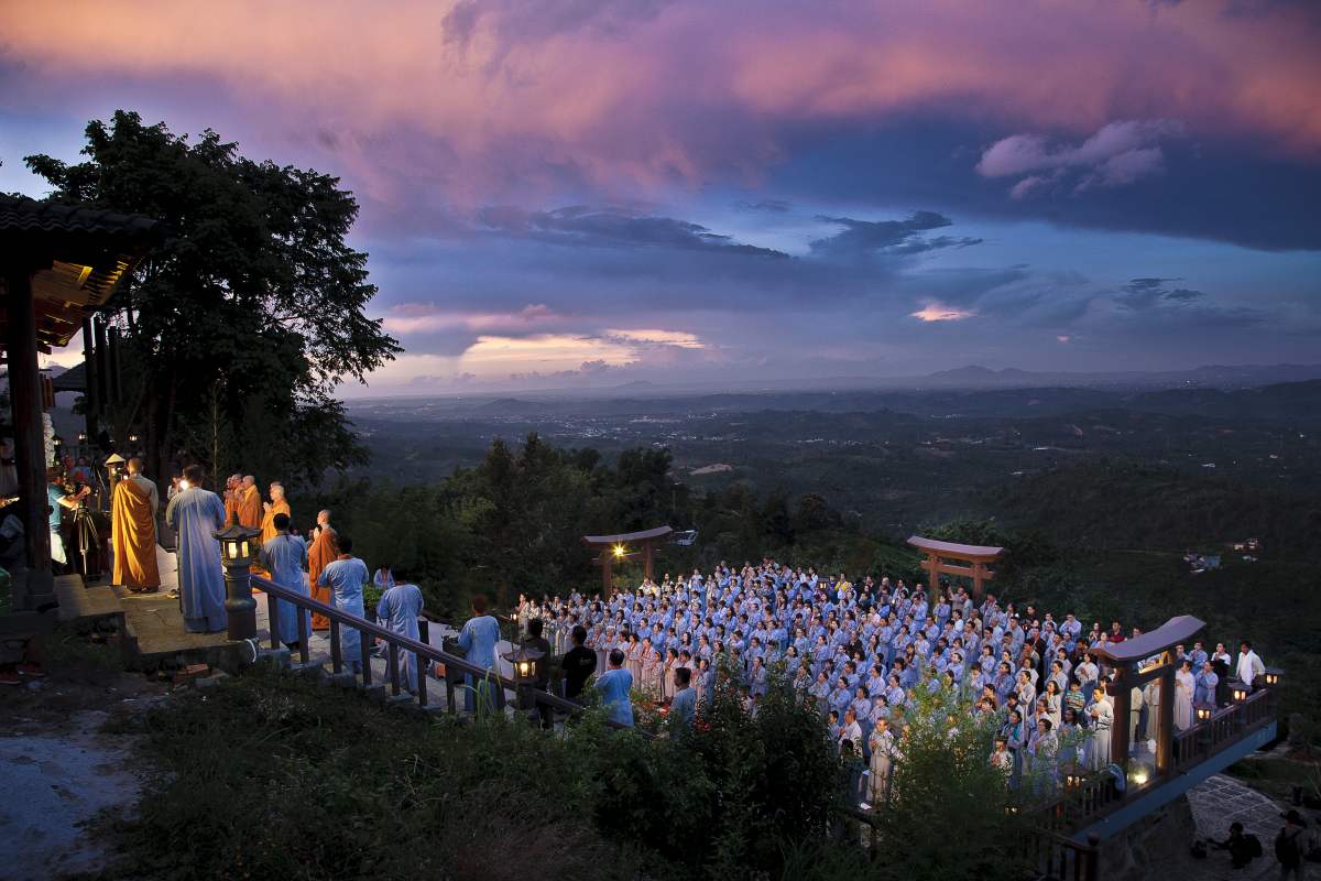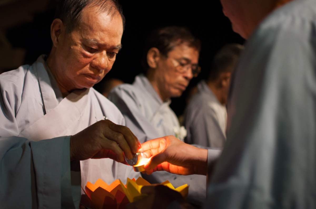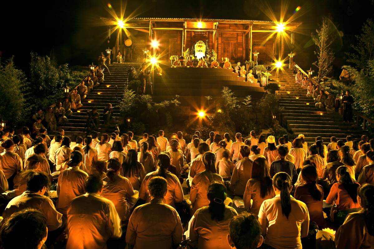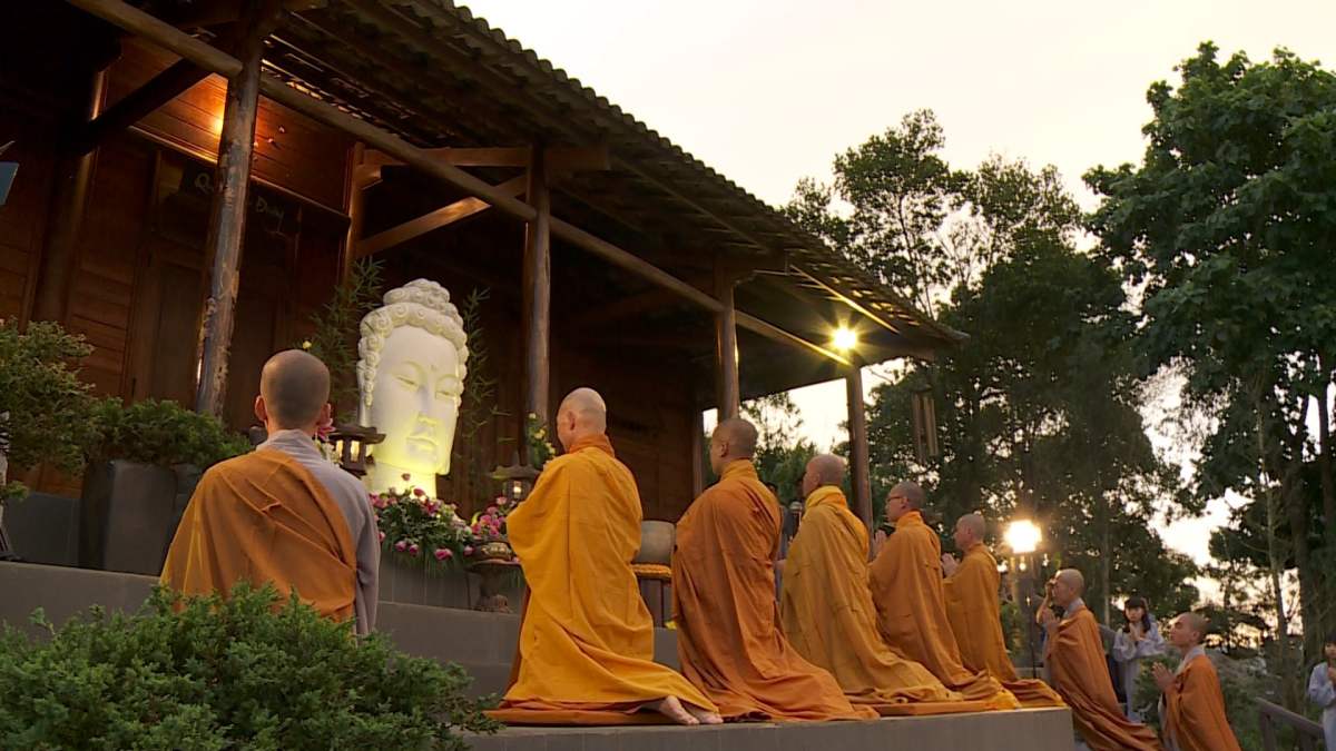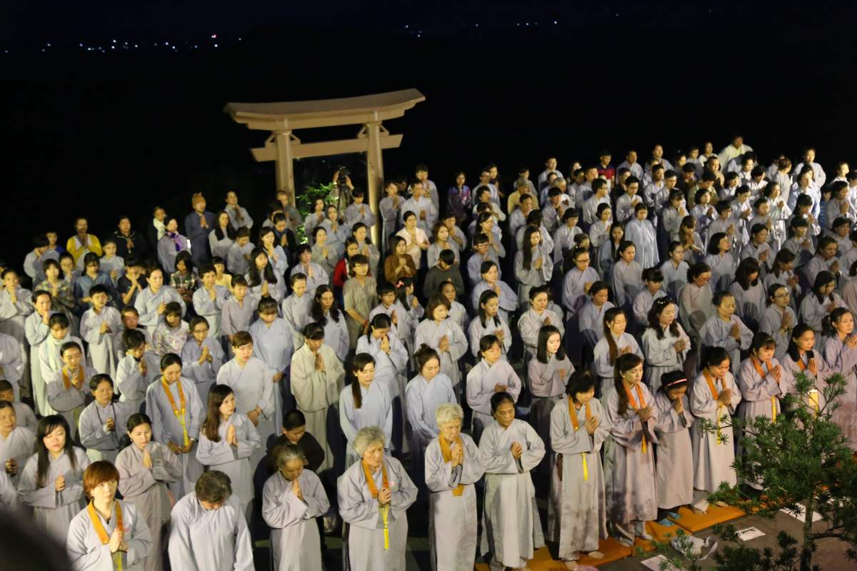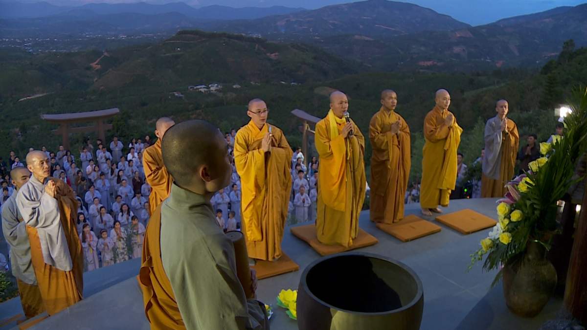 Sau nghi lễ cài hoa hồng là nghi thức dâng đèn hoa đăng với ý nghĩa thắp sáng niềm tin vào ba ngôi Tam bảo. Cầu cho quốc thái dân an, tri ân công sanh thành dưỡng dục của cha và mẹ. Những ngọn đèn mang lại ánh sáng ấm áp, xua tan đi những oan khiên, hận thù, bước theo con đường giải thoát của Như lai.