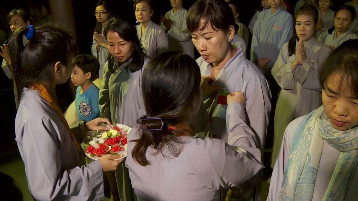 Khoảnh khắc thiêng liêng và lắng đọng mà tất cả mọi người con Phật đều ước mong khi ngày báo hiếu trở về, đó là giây phút được cài lên ngực những đóa hồng tươi thắm, để ý thức mình còn diễm phúc có mẹ cha bên cạnh.